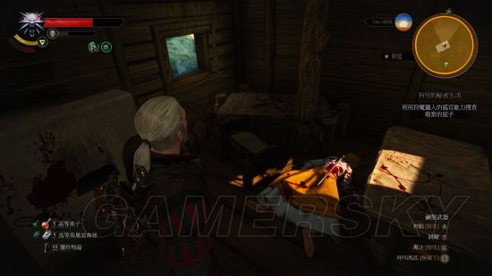 2.杰洛特正在特莉丝家里,搜索到的书全都是跟狩魔猎人相关的,还会保留巫师2外杰洛特送给特莉丝的回忆玫瑰。